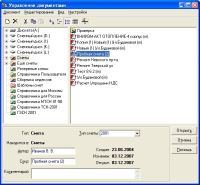 Документы, создаваемые и используемые в программе, управляются с помощью удобного менеджера документов. Они могут свободно передаваться между рабочими местами программы как по сети, так и посредством сменных носителей
